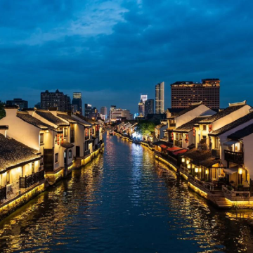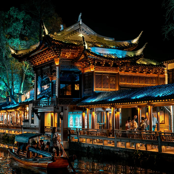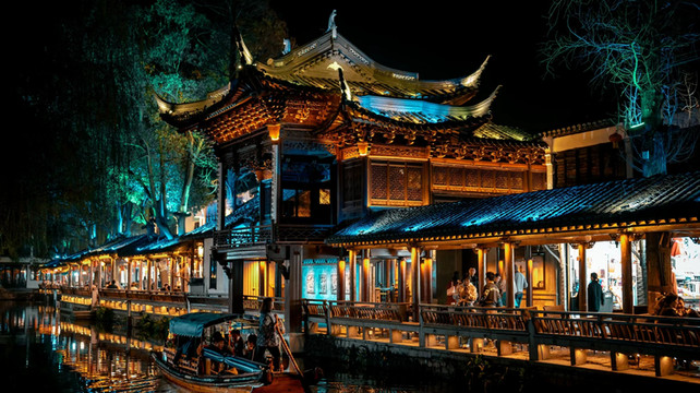 周庄是江南闻名于世的水乡古镇,镇上水路纵横,明清老建筑依河而建,画家陈逸飞笔下的双桥刻画出小桥流水人家的温柔,古镇南边的南湖开阔美丽。夜晚周庄亮了灯,又别有一番意境。